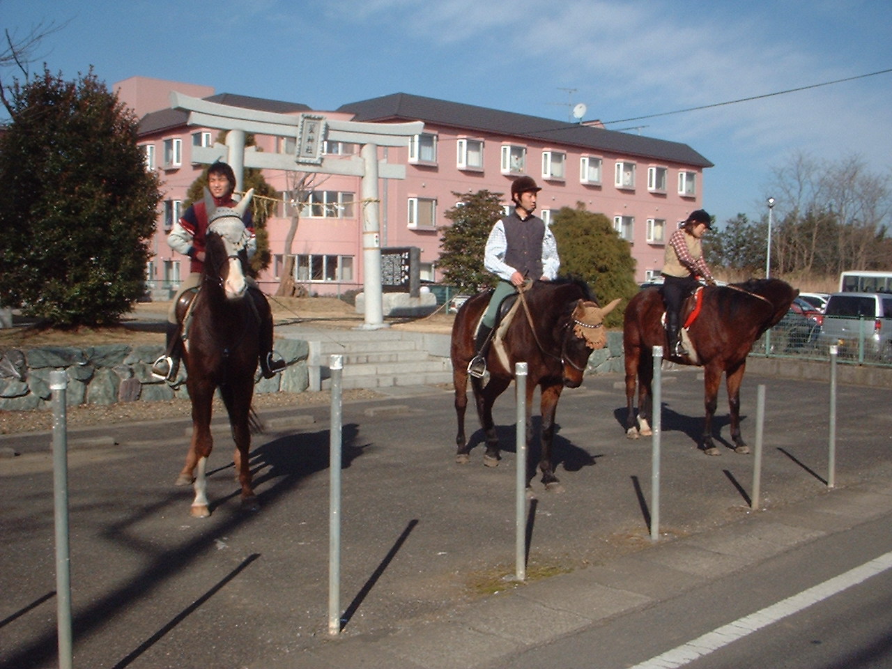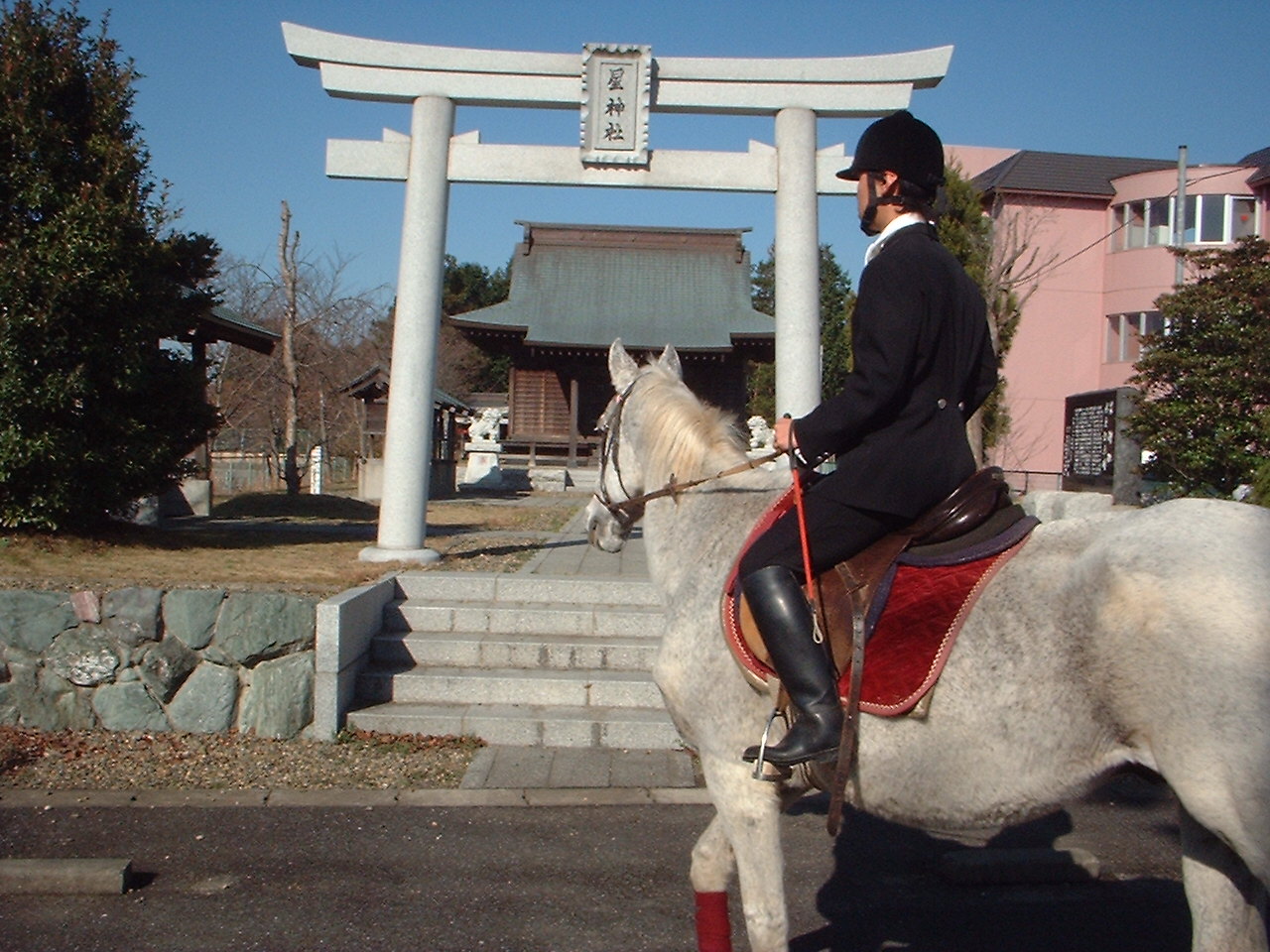 正装して初詣です。ジェットも赤いゼッケンと肢巻で